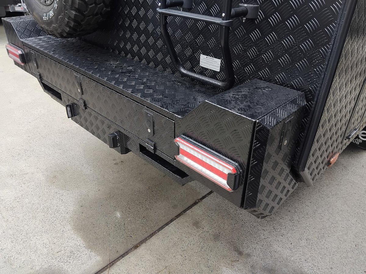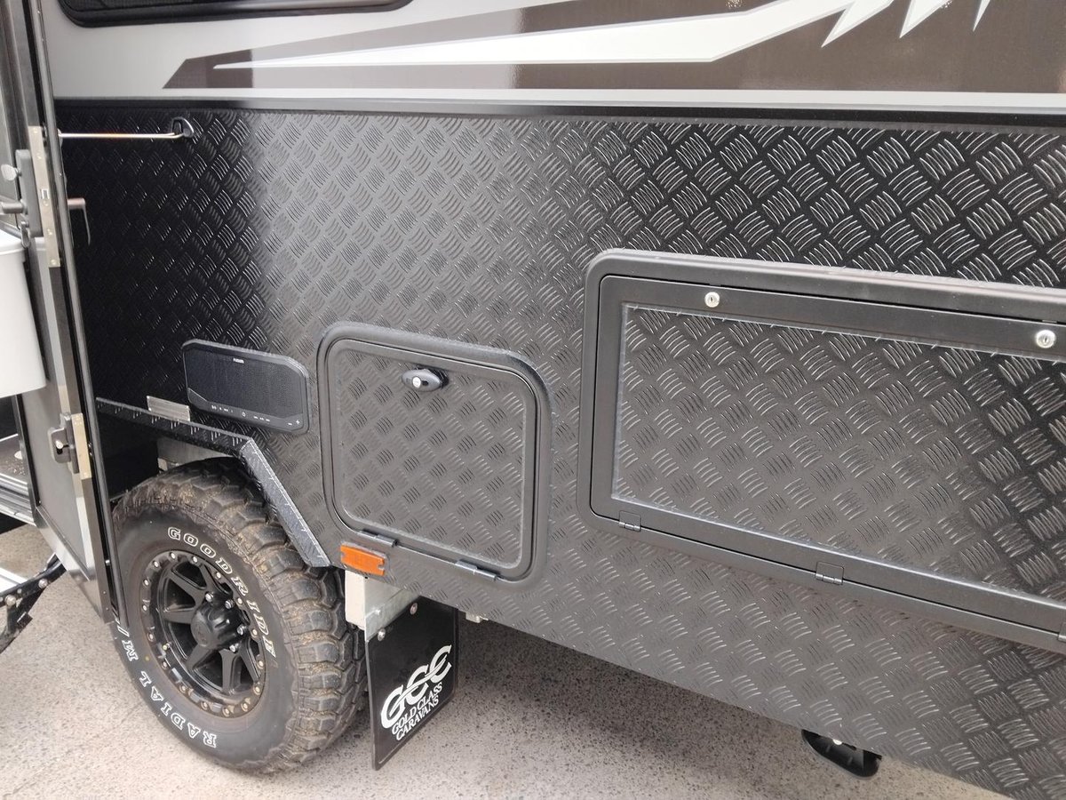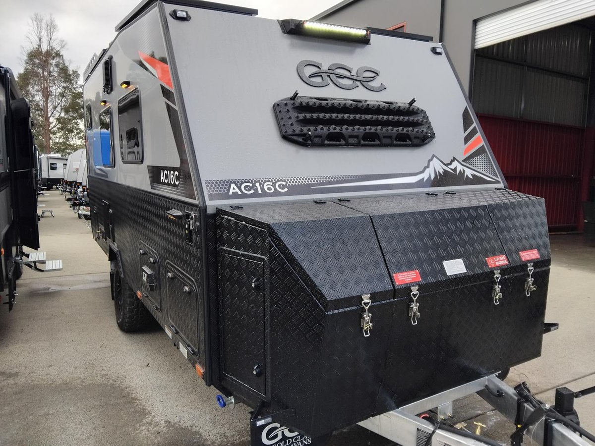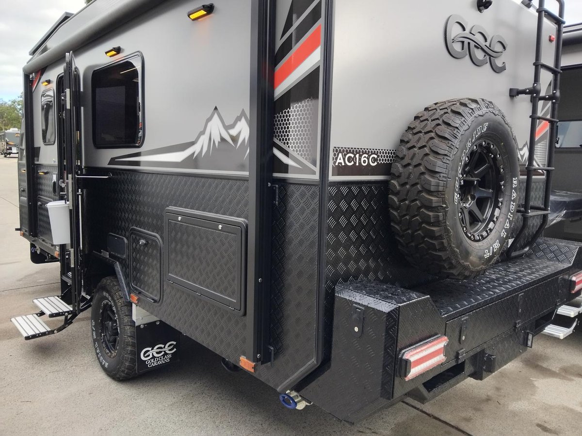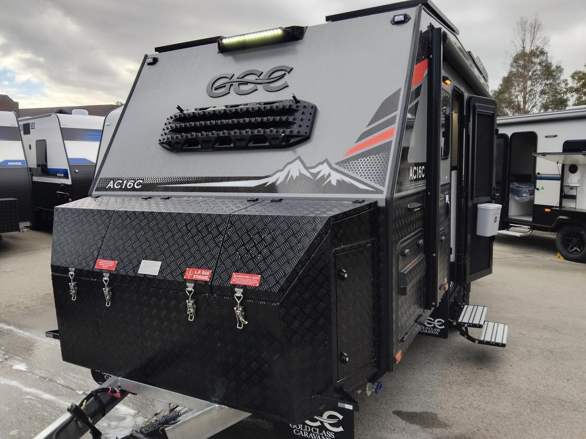 Experience uncompromised adventure and practical luxury with the Adventure Class 16ft Couples model (AC16C) from Gold Class Caravans. Crafted for couples who crave the thrill of off-road travel in a compact, agile design, this single-axle caravan features the proven Airbag Man suspension, a robust 600Ah Enerdrive Lithium Battery, and a 3000W Enerdrive Pure Sinewave Inverter to power your off-grid journeys with its generous rooftop solar array. Every element from the premium Eberspächer Diesel Heater to the cleverly engineered slide-out kitchen with a Thetford triple gas burner cooktop and NCE front loader washer/dryer is meticulously designed for efficiency and comfort. Step inside to discover an intelligently appointed interior boasting high-end finishes, innovative storage, and a refined layout that transforms travel into a delightful getaway.
