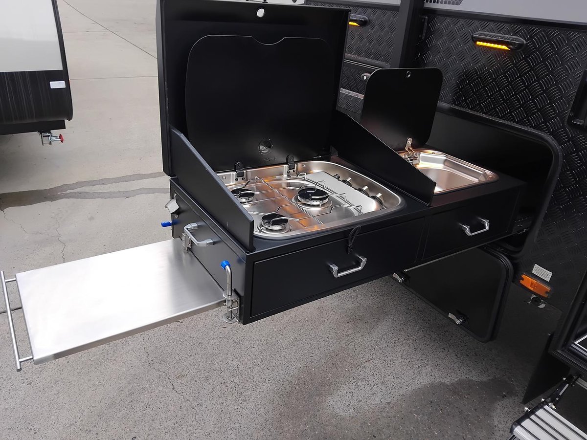 Experience uncompromised adventure and practical luxury with the Adventure Class 16ft Couples model (AC16C) from Gold Class Caravans. Crafted for couples who crave the thrill of off-road travel in a compact, agile design, this single-axle caravan features the proven Airbag Man suspension, a robust 600Ah Enerdrive Lithium Battery, and a 3000W Enerdrive Pure Sinewave Inverter to power your off-grid journeys with its generous rooftop solar array. Every element from the premium Eberspächer Diesel Heater to the cleverly engineered slide-out kitchen with a Thetford triple gas burner cooktop and NCE front loader washer/dryer is meticulously designed for efficiency and comfort. Step inside to discover an intelligently appointed interior boasting high-end finishes, innovative storage, and a refined layout that transforms travel into a delightful getaway.