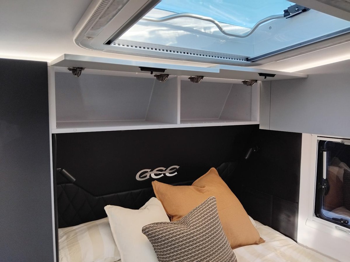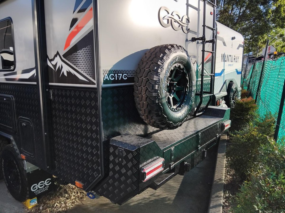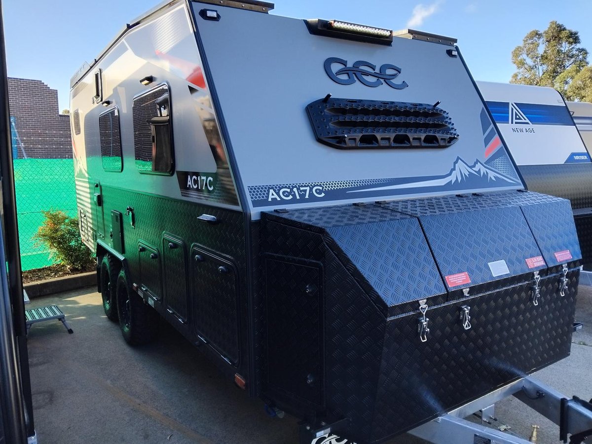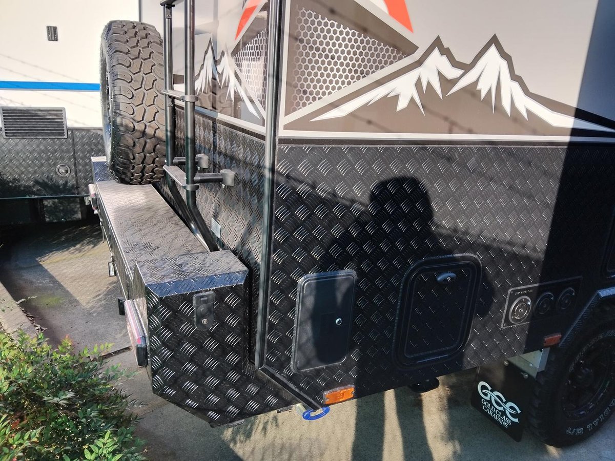 Experience elevated mobile luxury with the Adventure Class 17ft Couples model (AC17C) from Gold Class Caravans. Designed for couples who crave dynamic performance and refined comfort, this off-road marvel features a robust tandem axle configuration, state-of-the-art Airbag Man suspension, a dependable 600Ah Enerdrive Lithium Battery, and 1095W of high-efficiency rooftop solar power to drive your off-grid adventures. Every detail, from the premium Eberspächer Diesel Heater to the meticulously engineered slide-out kitchen featuring a Thetford triple gas burner cooktop and NCE front loader washer/dryer, is crafted for both peak performance and sophisticated elegance. Step inside to discover a stylish interior boasting a sumptuous queen bed complemented by a cosy café dinette, turning every journey into a memorable escape.