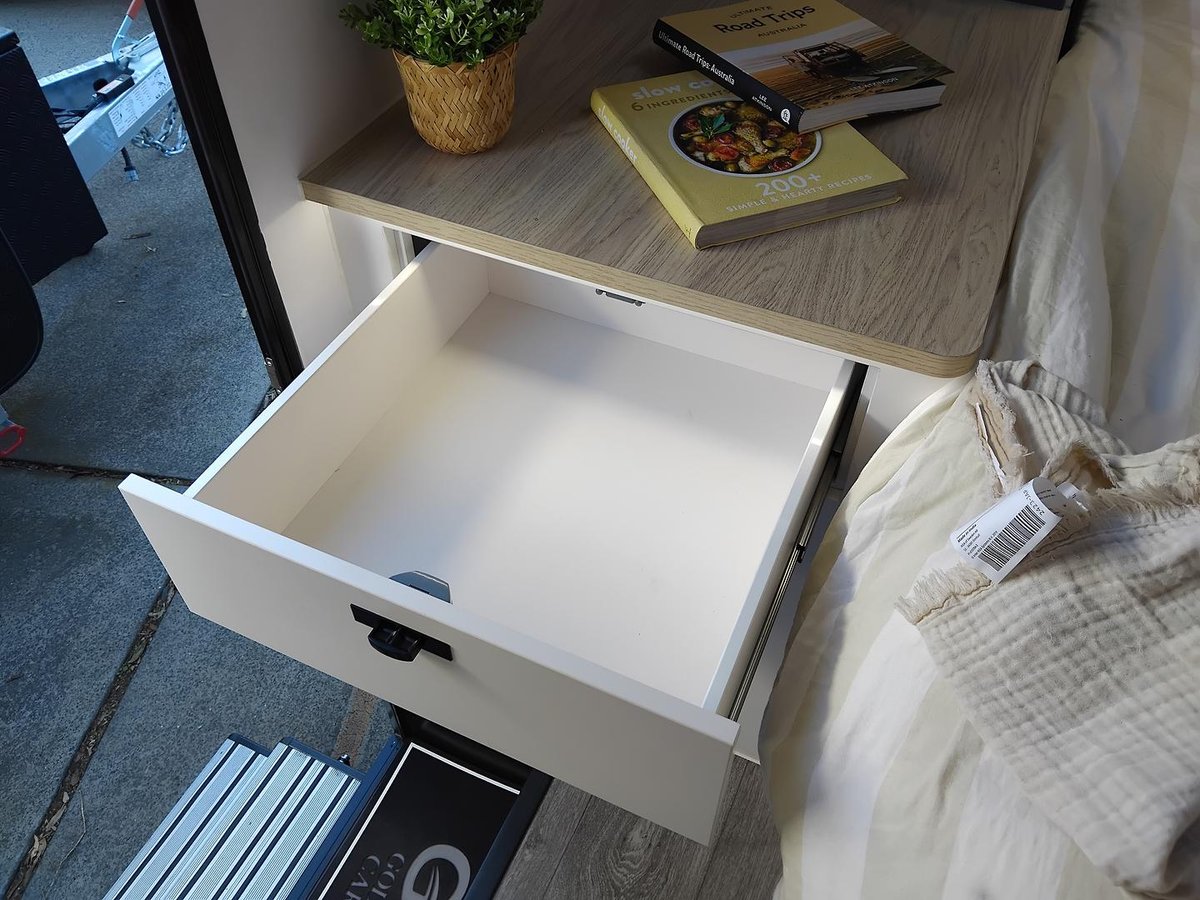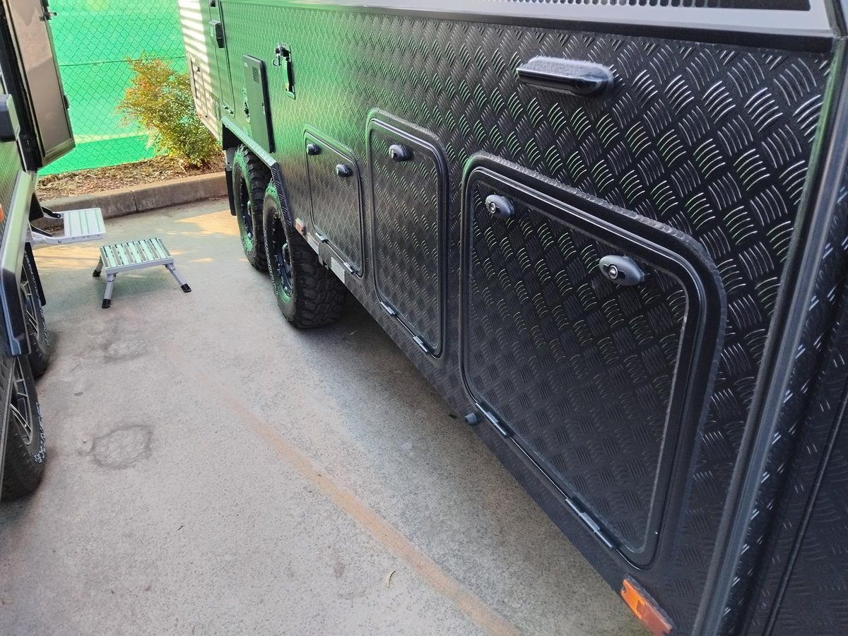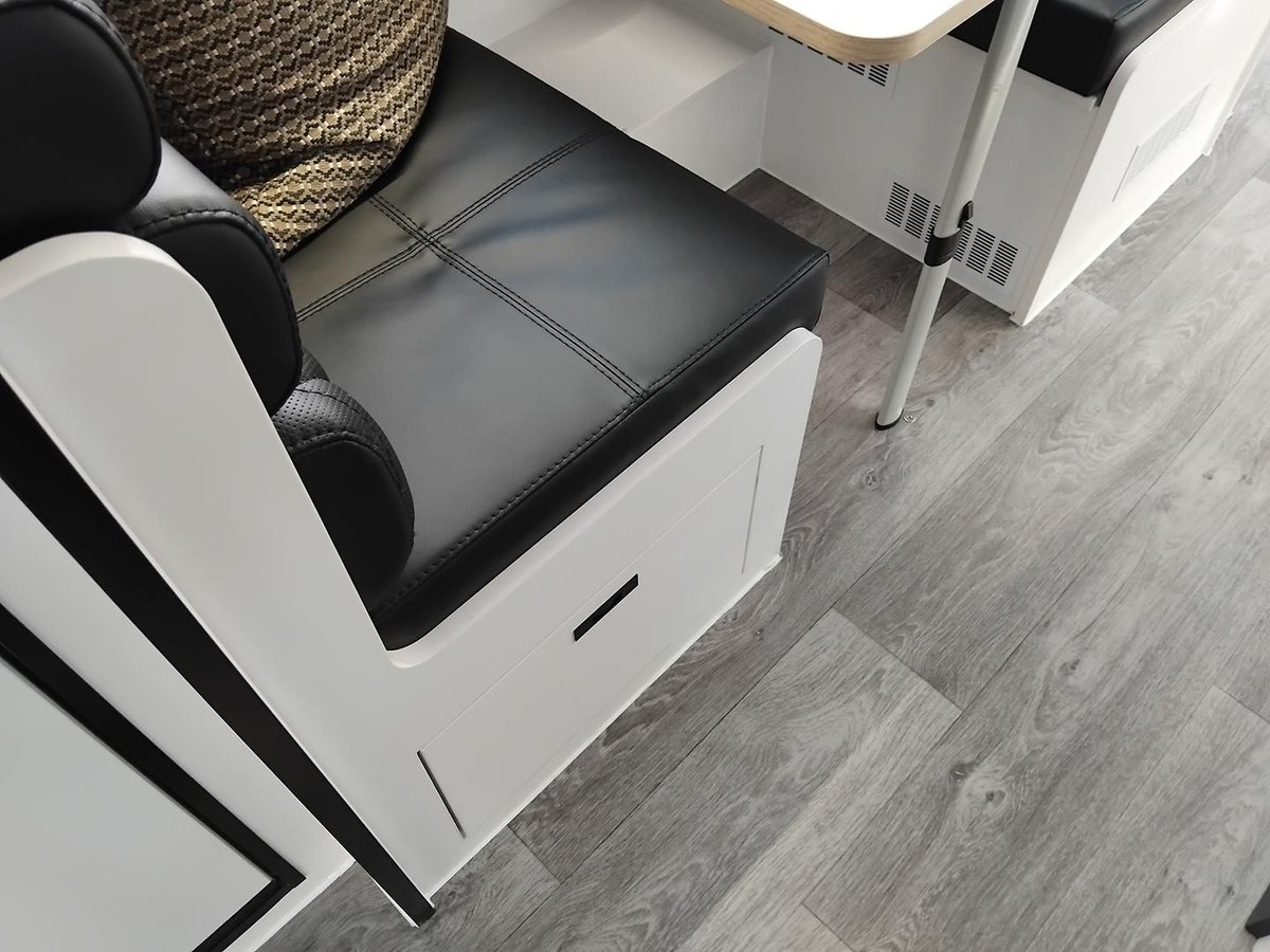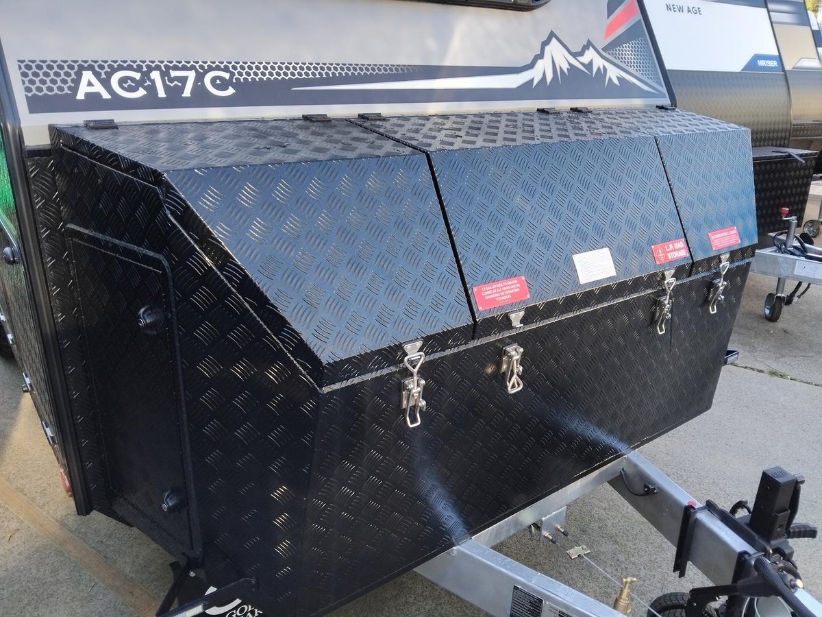 Experience elevated mobile luxury with the Adventure Class 17ft Couples model (AC17C) from Gold Class Caravans. Designed for couples who crave dynamic performance and refined comfort, this off-road marvel features a robust tandem axle configuration, state-of-the-art Airbag Man suspension, a dependable 600Ah Enerdrive Lithium Battery, and 1095W of high-efficiency rooftop solar power to drive your off-grid adventures. Every detail, from the premium Eberspächer Diesel Heater to the meticulously engineered slide-out kitchen featuring a Thetford triple gas burner cooktop and NCE front loader washer/dryer, is crafted for both peak performance and sophisticated elegance. Step inside to discover a stylish interior boasting a sumptuous queen bed complemented by a cosy café dinette, turning every journey into a memorable escape.
