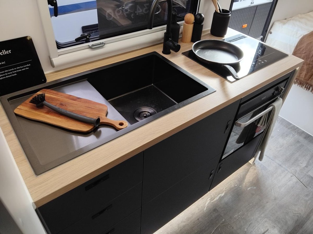 Experience versatile mobile luxury with the Adventure Class 18ft Family model (AC18F) from Gold Class Caravans. Perfectly tailored for families who seek both adventure and comfort, this off-road marvel features a robust tandem axle configuration, refined Airbag Man suspension, a reliable 600Ah Enerdrive Lithium Battery, and 1050W of high-efficiency rooftop solar to power extended off-grid excursions. Every detail from the premium Eberspächer Diesel Heater to the expertly designed slide-out kitchen with a Thetford triple gas burner cooktop and NCE front loader washer/dryer is meticulously engineered for optimal performance and family-friendly functionality. Step inside to discover a spacious interior that blends modern design with innovative storage, ensuring every family journey is as comfortable as it is exciting.