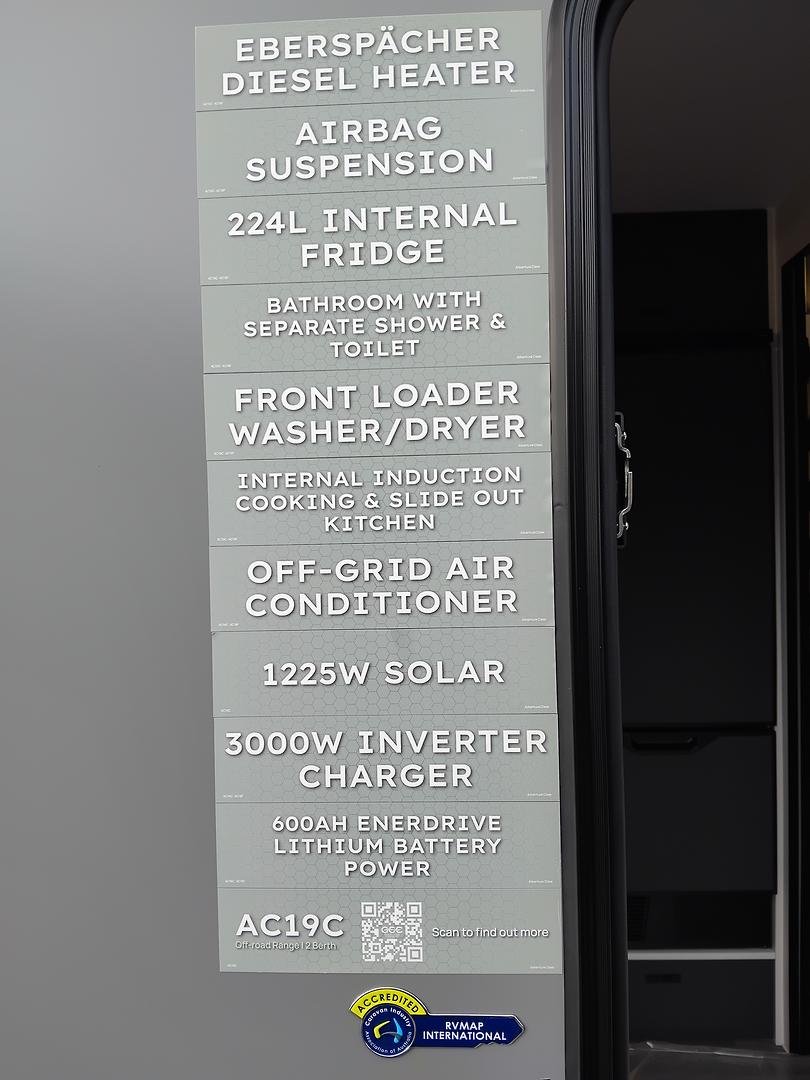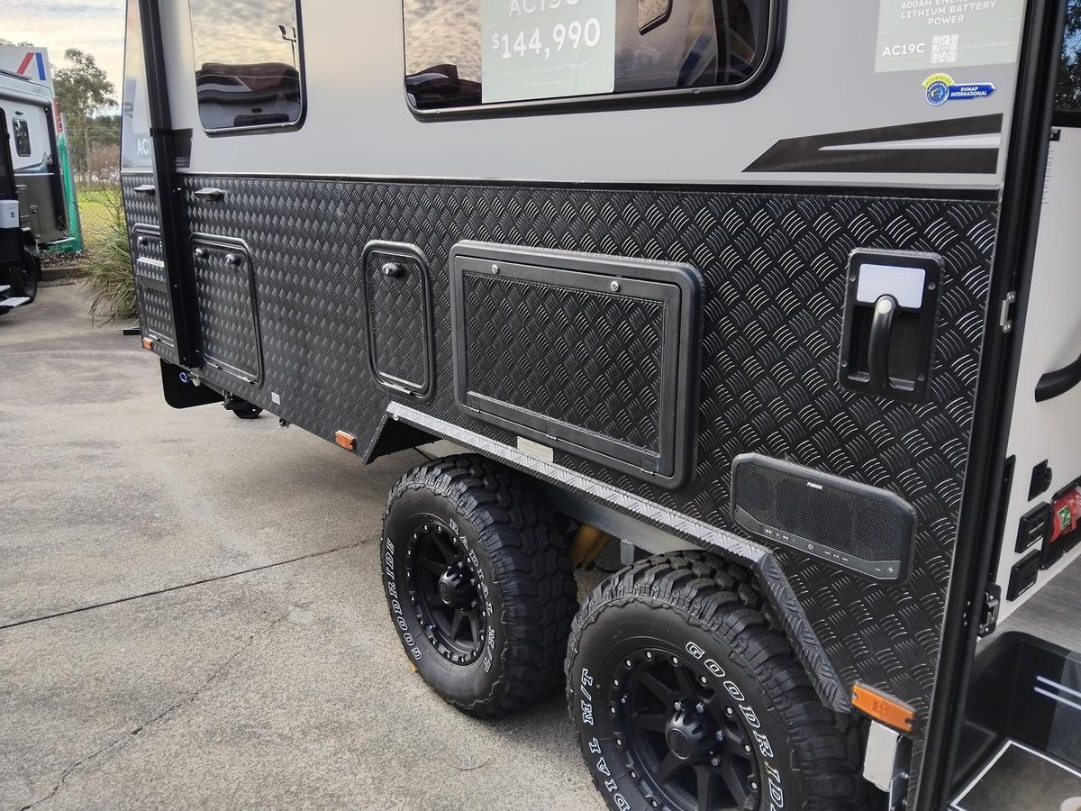 Meet the AC19C; a high-performance haven for offroad enthusiasts who desire the perfect blend of rugged capability and refined indulgence. Engineered for fearless exploration, its rugged chassis (backed by a lifetime chassis warranty) and state-of-the-art Airbag Man suspension empower you to conquer any terrain with unwavering confidence. The cutting-edge Enerdrive system featuring a 600AH Lithium Battery system, a 1225W solar array, and a 3000W inverter, ensures you remain powered for off-grid adventures, while Dometic induction cooking and off-grid air conditioning provide residential-level comfort on the road. The AC19C isn’t just a caravan; it’s your ultimate ticket to a lifestyle where adrenaline meets opulence.