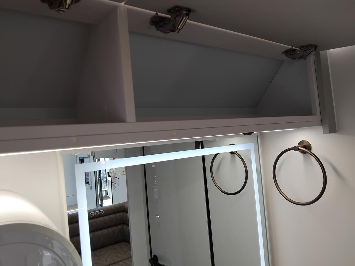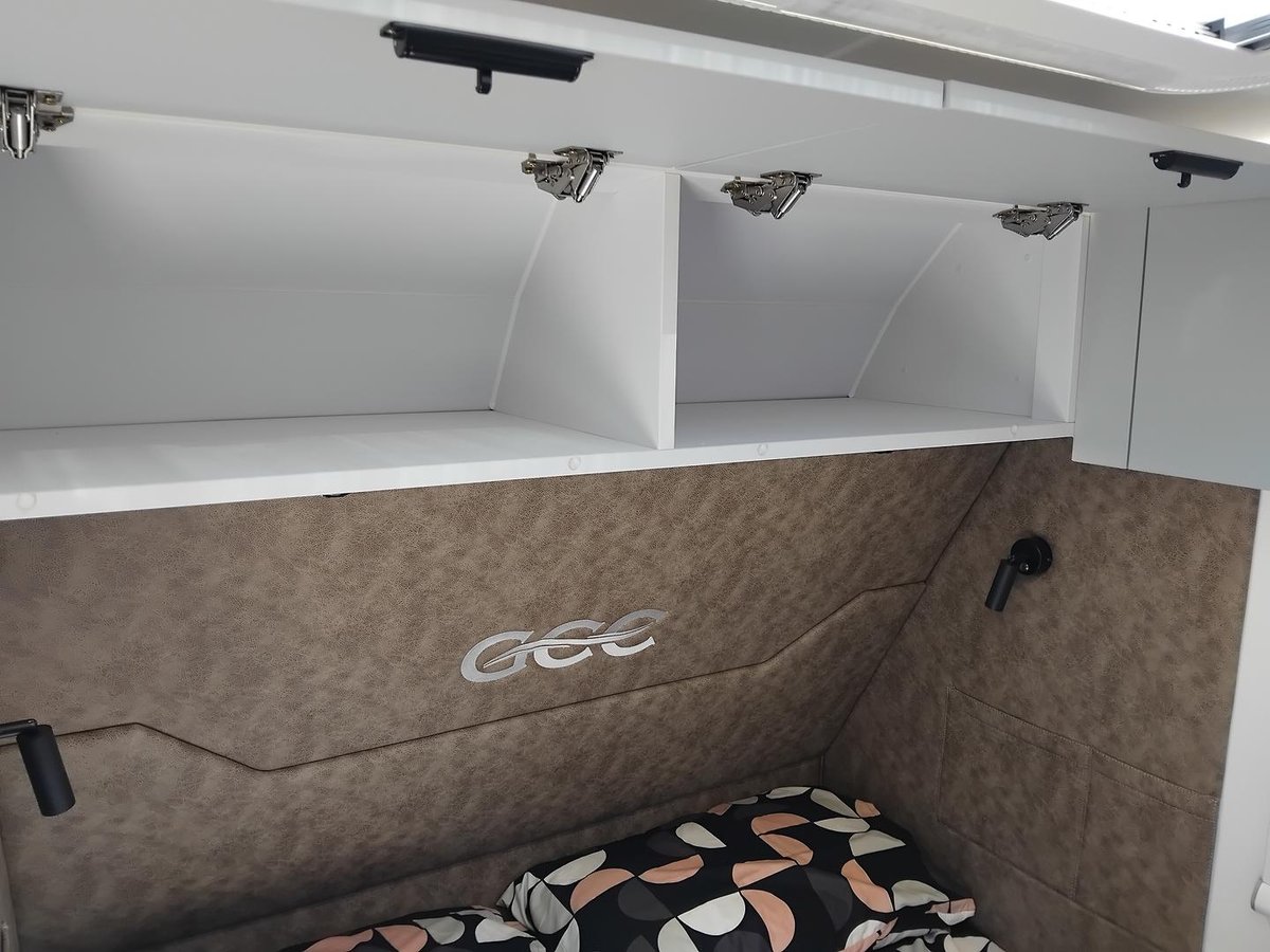Discover elevated touring luxury with the Luxe Class 17ft Couples model (LC17C) from Gold Class Caravans, now redefined as part of our Semi-Offroad range. Perfect for couples who desire a tandem-axle caravan that merges comfort and versatility for sealed road journeys; with the capacity to handle occasional light off-road conditions, this model boasts independent coil suspension, a 300Ah Enerdrive Lithium Battery system, 525W of rooftop solar, and a 2000W Enerdrive Pure Sinewave Inverter for sustained off-grid living. Every component, from the Eberspächer Diesel Heater to the efficient NCE washer/dryer and Dometic induction cooking setup, is expertly designed to enhance your travel experience. Step inside to find a refined interior accented by leatherette upholstery, soft-close cabinetry, and dusk bronze fixtures, creating a warm retreat wherever the road leads.