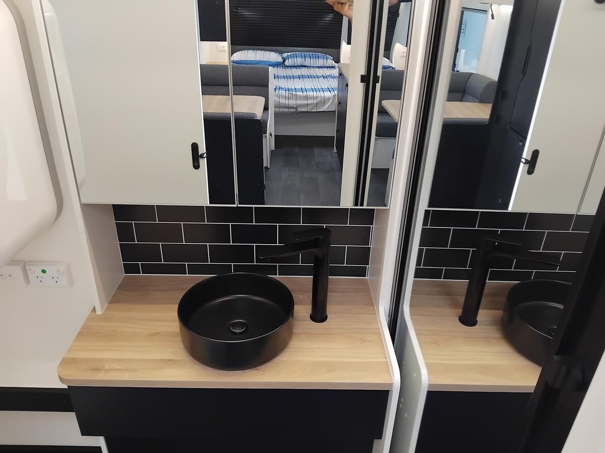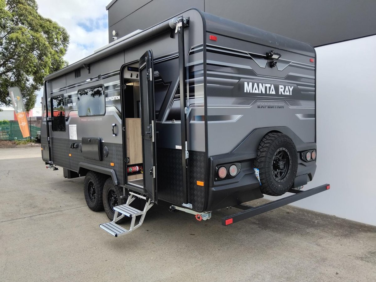 The 2026 New Age Manta Ray 19 introduces a spacious new layout with enhanced comfort, functionality, and premium styling, making it ideal for travellers who value room to move. Key upgrades include a redesigned curved robe, thicker 25mm benchtops, a relocated door side kitchen for improved flow, and a roadside toilet for better space utilisation. Modern conveniences such as internal and external USB-C charging, a sleek single-bowl sink, and acoustic panelling elevate everyday comfort, while new decals and refreshed colour options complete the refined, contemporary look—delivering a caravan built for style, quality, and adventure.