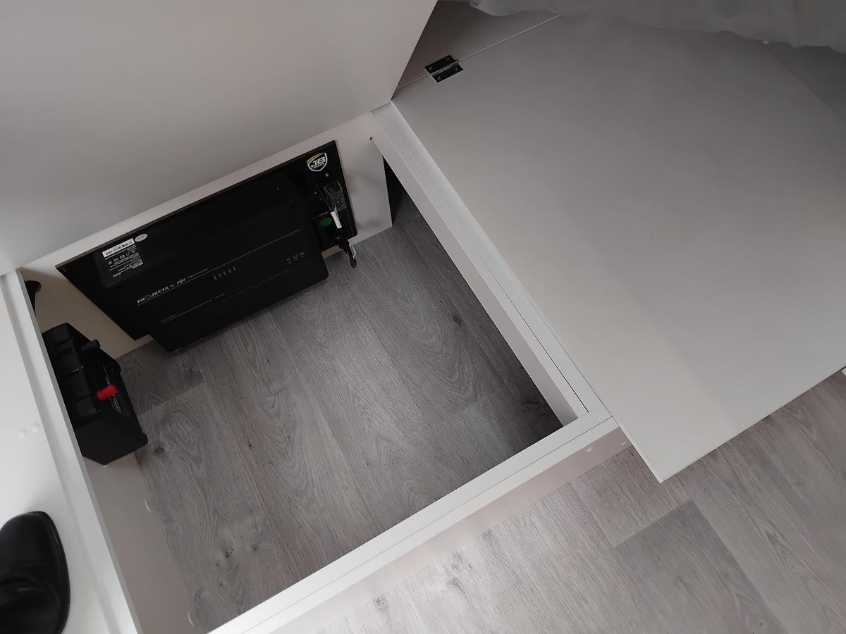 * UNIQUE large entertainment hatch with TV mount and large drop down table