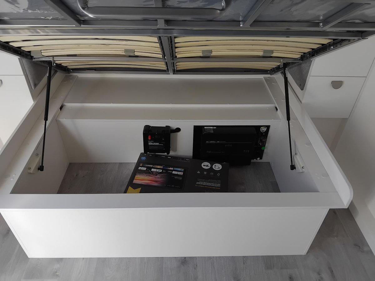 * UNIQUE large entertainment hatch with TV mount and large drop down table