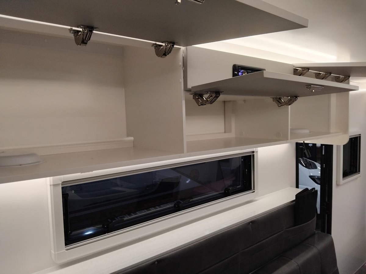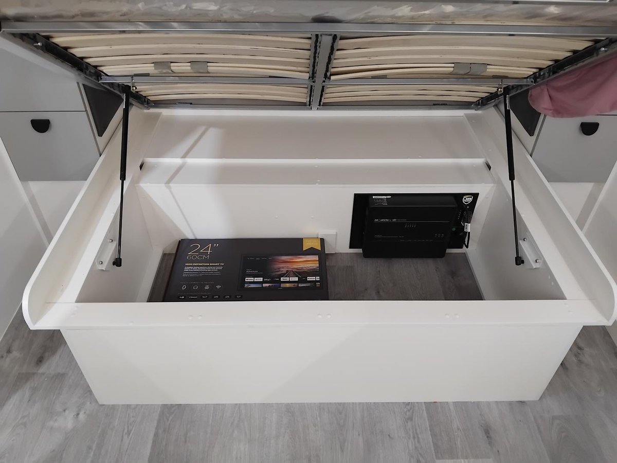 * UNIQUE large entertainment hatch with TV mount and large drop down table